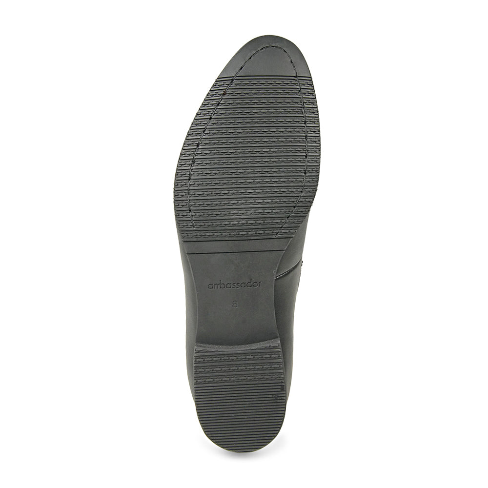 Elevate your everyday style with these sophisticated men’s black loafers, the perfect addition to any modern wardrobe. These shoes feature a sleek black textured finish that adds a layer of sharp, professional detail to your look, whether you are heading to an important office meeting or a formal wedding. The easy slip-on design means you can get ready in seconds without losing out on elegance. With a classic metallic buckle on the front and clean stitching, these black dress shoes provide a high-end feel that helps you stand out with confidence.Designed for the man on the move, these formal slip-on shoes focus on all-day comfort and long-lasting quality.