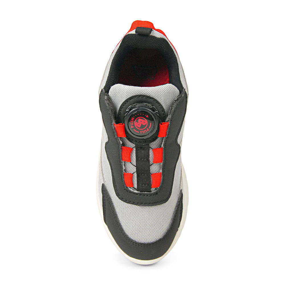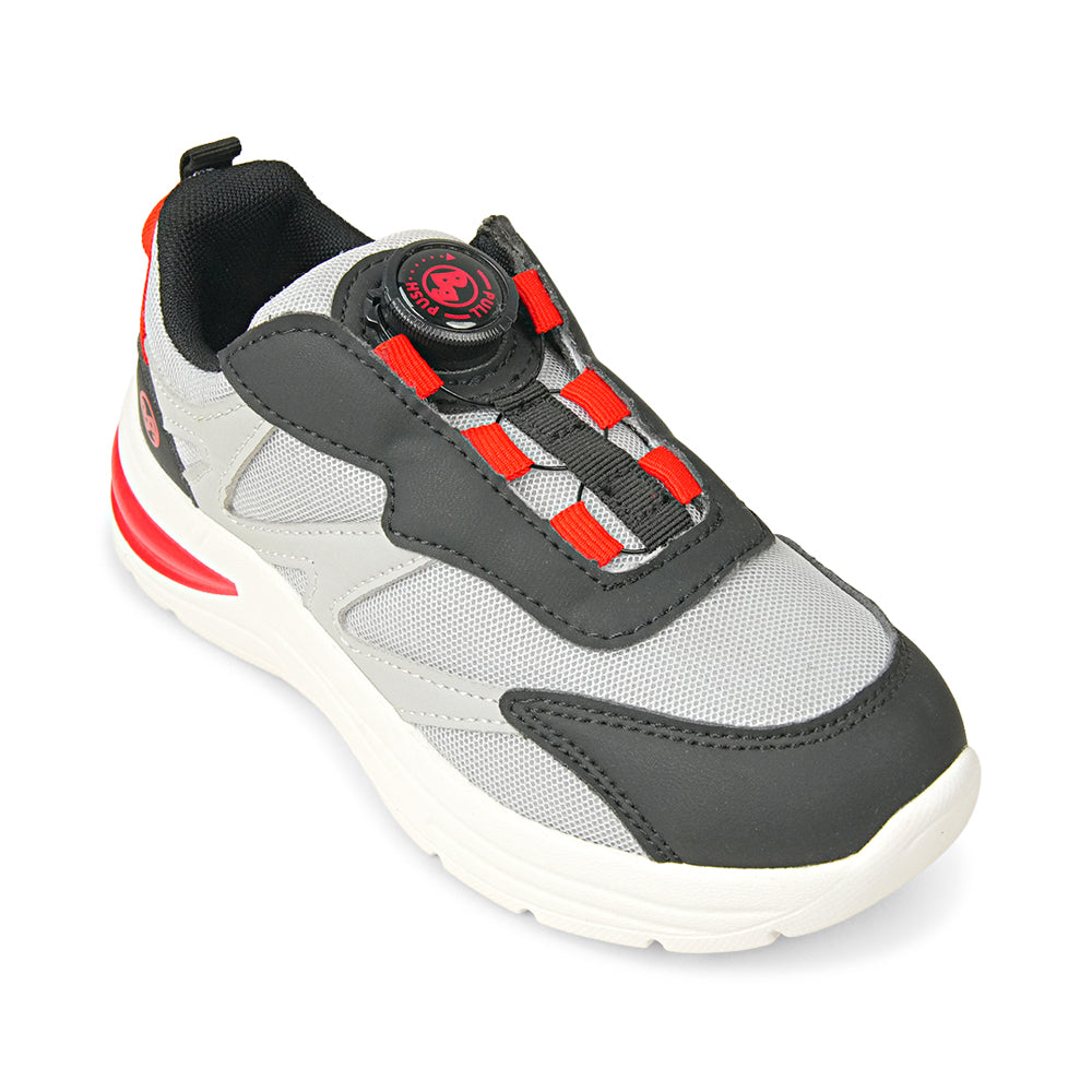 Give your young athlete the perfect combination of speed and style with these Kids' Grey, Black and Red Sporty Sneakers. Designed for the high-energy child who loves to run, jump, and explore, these sneakers bring a modern, athletic look to their everyday adventures. The sleek cool grey mesh paired with bold racing red accents creates a dynamic design that looks as fast as they feel. These performance-focused shoes are built for all-day comfort and durability. Featuring a breathable mesh upper, they keep active feet cool and dry even during the most intense playground games.
