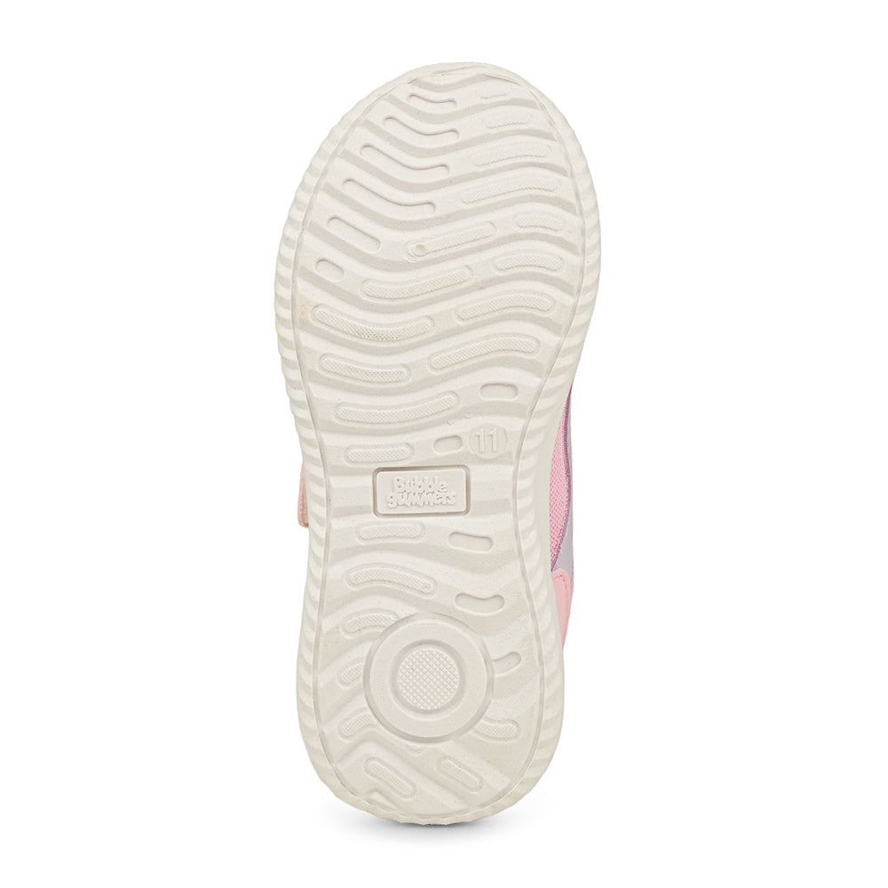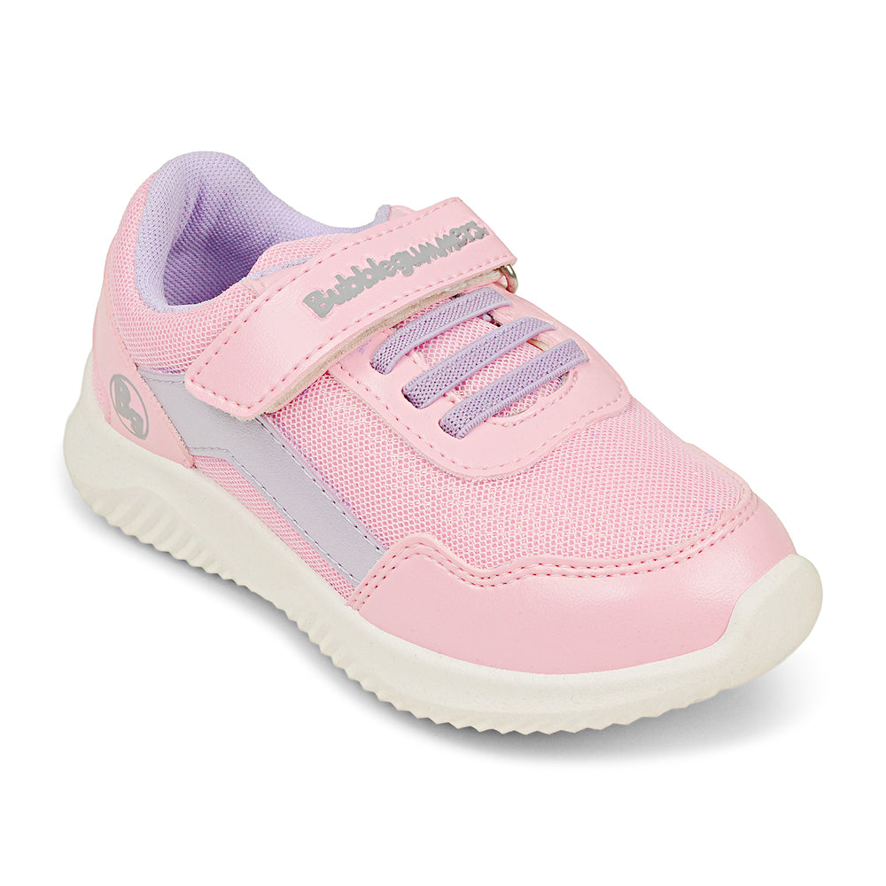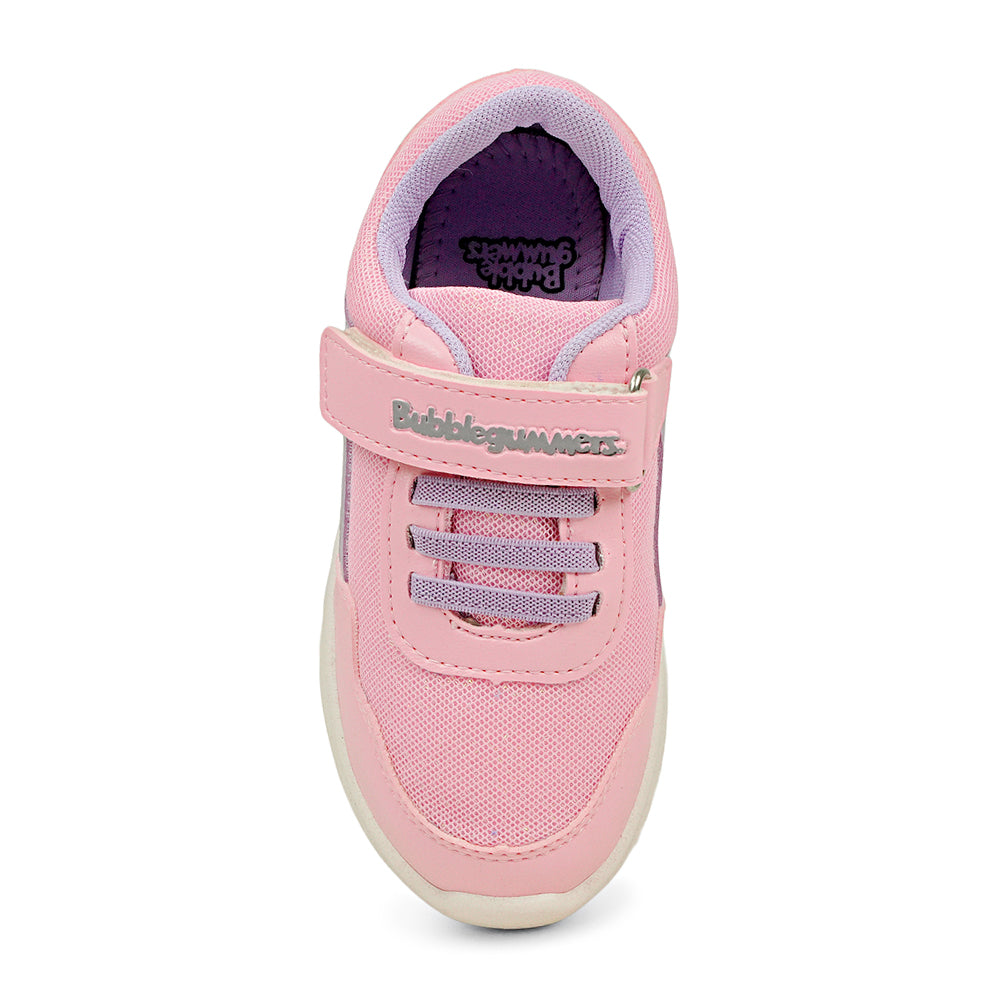 Elevate your little one’s playtime with these vibrant and supportive Bubblegummers Sneakers. Designed specifically for active toddlers, these shoes blend a playful aesthetic with the structural integrity needed for growing feet. Featuring a charming pink and lavender palette, these joggers are as stylish as they are functional, making them the perfect companion for preschool, playground adventures, or weekend family outings. A single adjustable strap plus elastic ""faux"" laces allows for a secure fit and easy on/off. Soft interior lining provides all-day comfort for sensitive feet. Flexible rubber sole designed for superior grip on various surfaces. Infused with a sweet aroma for a fun sensory experience.