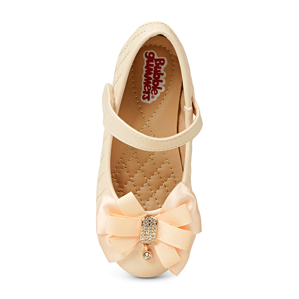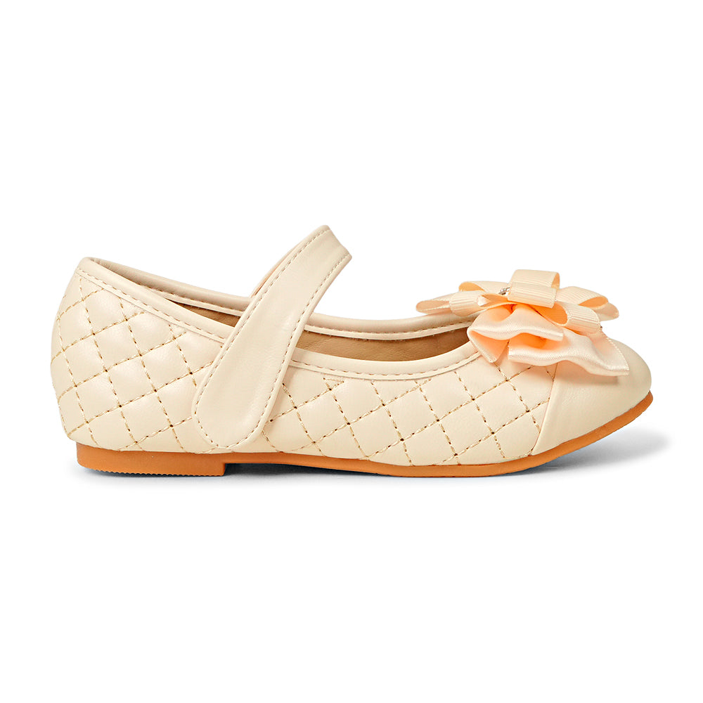 Step into timeless elegance with our Girls' Quilted Mary Jane Flats. Designed to blend sophisticated charm with everyday durability, these shoes are the perfect choice for little fashionistas. Whether she is heading to a wedding, a birthday party, or a family dinner, these shoes add a touch of "grown-up" style while keeping her feet cozy and happy all day long. The beautiful cream-beige finish features a premium quilted texture that mimics high-end designer styles. A playful, multi-layered ribbon bow sits at the toe, adding a soft, feminine flair that captures the light. With an easy-to-use strap and a sturdy grip sole, these flats aren't just about looks they are built for play, dance, and making memories.