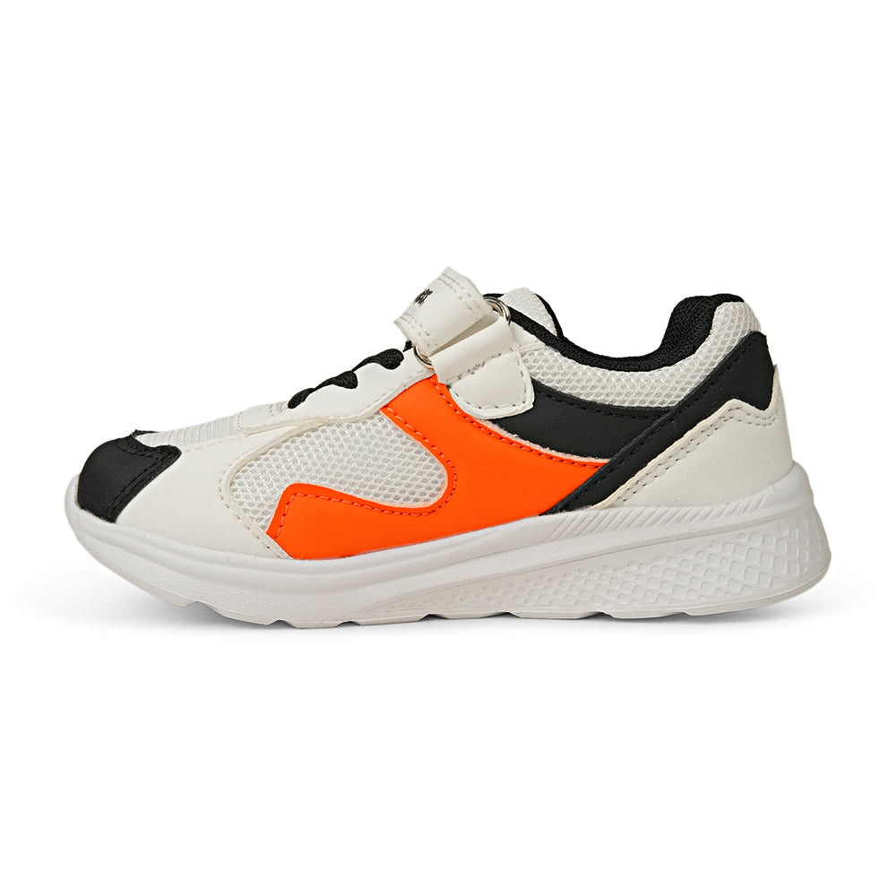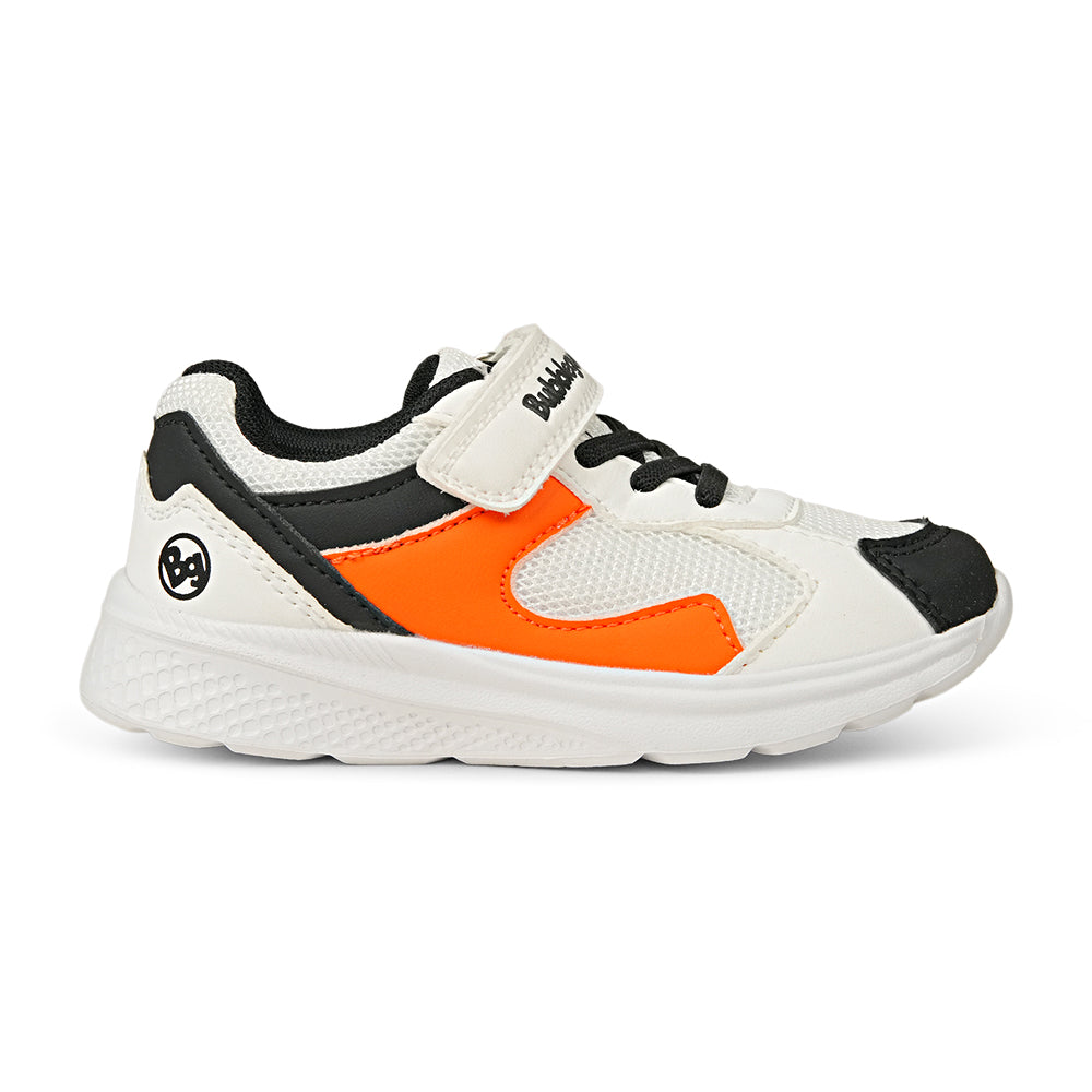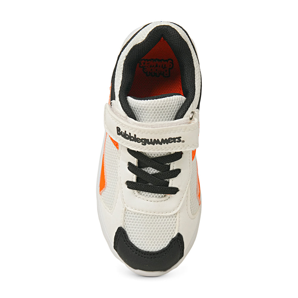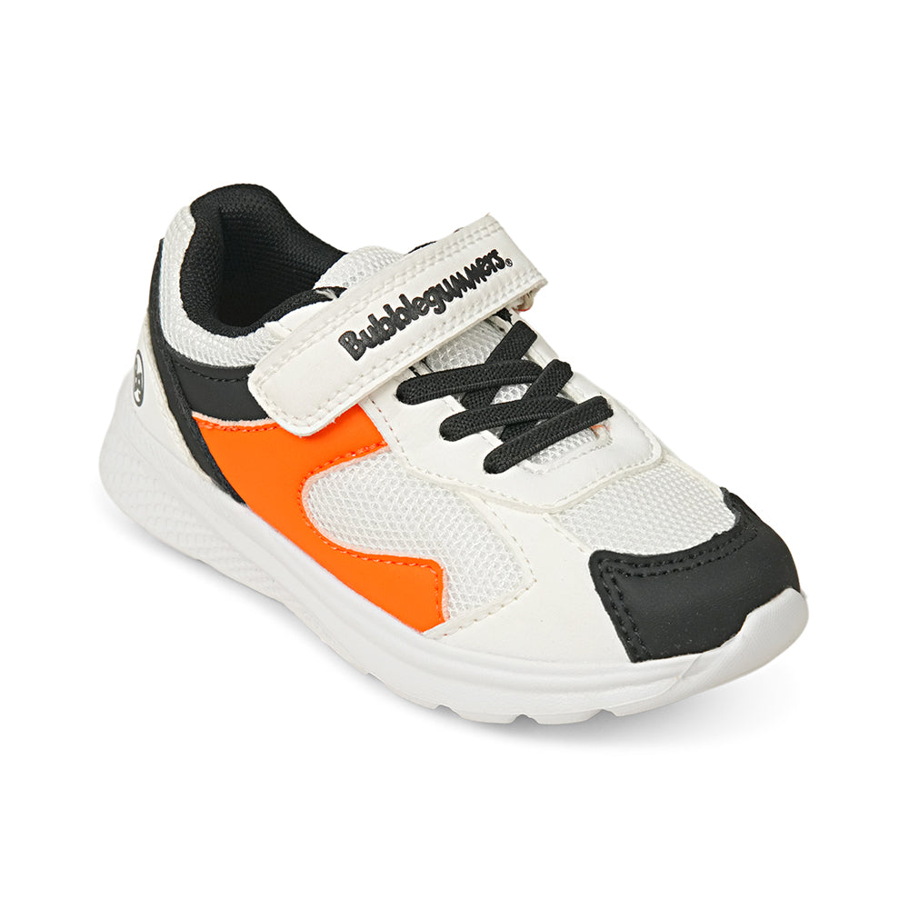 Brighten up your child's active days with these energetic Bubblegummers sports sneakers. Featuring a bold orange, crisp white, and classic black color palette, these shoes are designed to stand out on the playground and the sports field. The breathable mesh upper allows for maximum airflow, keeping young feet fresh and comfortable during high-energy activities. With a lightweight design and a supportive white midsole, these sneakers provide the perfect balance of flexibility and cushioning for all-day play.Parent-friendly and kid-approved, these shoes feature a convenient Velcro strap closure and elastic laces to ensure a snug fit that is easy to put on and take off.