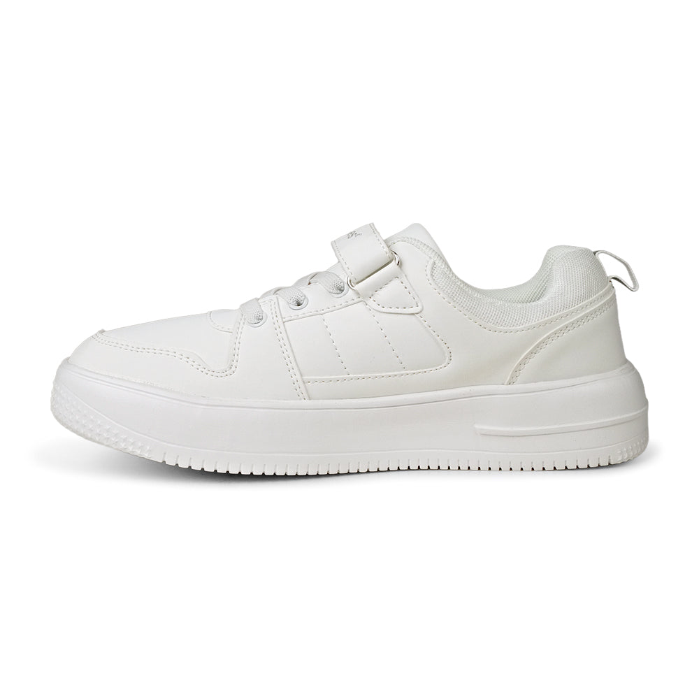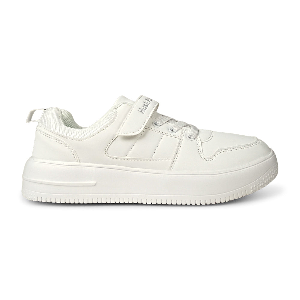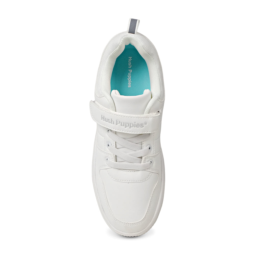 Step up your footwear game with these pristine white sneakers from Hush Puppies. Designed for both style and practicality, they offer a crisp look that pairs perfectly with school uniforms or casual weekend outfits.Featuring signature Hush Puppies comfort, these durable shoes include a supportive profile and a secure hook-and-loop strap paired with classic laces for a stable, custom fit. The high-quality, smooth synthetic upper is scuff-resistant and easy to clean, keeping them looking brand new from the classroom to the playground.