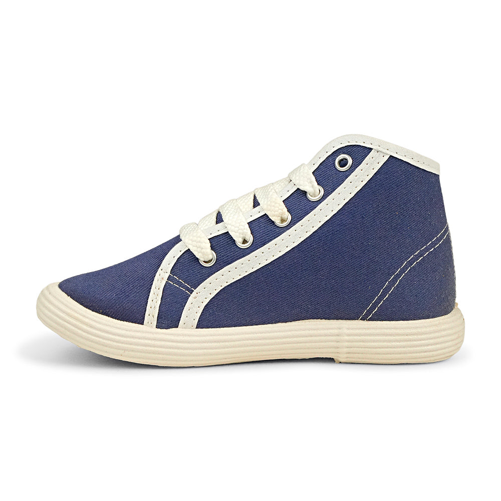 Bring a touch of vintage flair and everyday durability to your child’s wardrobe with the Classic Bata High-Top Canvas. These iconic high-top canvas sneakers are designed for active kids who need a shoe that can keep up with school sports, playground adventures, and casual weekend outings. Combining a timeless silhouette with a comfortable fit, these boots are a must-have for every youngster. The breathable navy blue canvas upper provides excellent airflow, while the reinforced white piping and textured rubber sole offer the support needed for all-day play. Whether they are heading to a physical education class or a family picnic, these ""High-Top Canvas"" deliver the perfect blend of retro style and modern reliability.