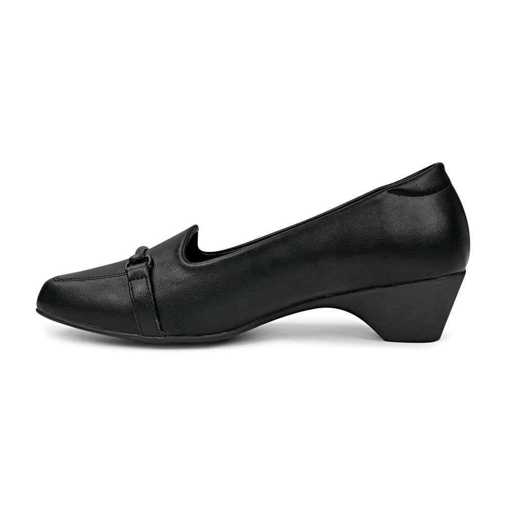 STYLE TIPS: For a polished corporate look, pair these low-heeled pumps with a tailored kurti and slim-fit trousers for a modern, professional vibe. Alternatively, style them with a structured blazer and ankle-length cigarette pants for a sleek office ensemble. Add delicate stud earrings and a classic wristwatch to complete a refined, confident look that’s perfect for boardroom meetings or office presentations.