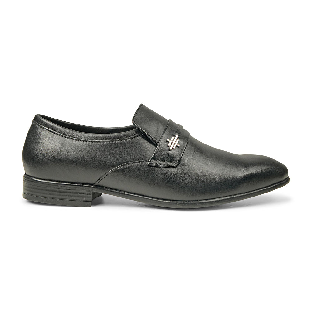 Step up your style game with these timeless Men’s Leather Loafers. Designed for the modern man who values both elegance and ease, these shoes offer a sleek, polished look that never goes out of fashion. Whether you are heading to a high-stakes business meeting or a casual evening dinner, these loafers provide the perfect finishing touch to your outfit. Crafted with a smooth, Black finish, these shoes feature a minimalist design highlighted by a tasteful metallic accent on the strap. The slip-on style ensures you can get ready in seconds without compromising on a professional appearance. With a comfortable interior and a durable sole, these loafers are built to keep you feeling confident and steady on your feet all day long.