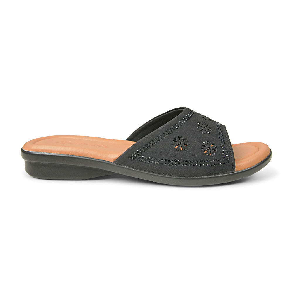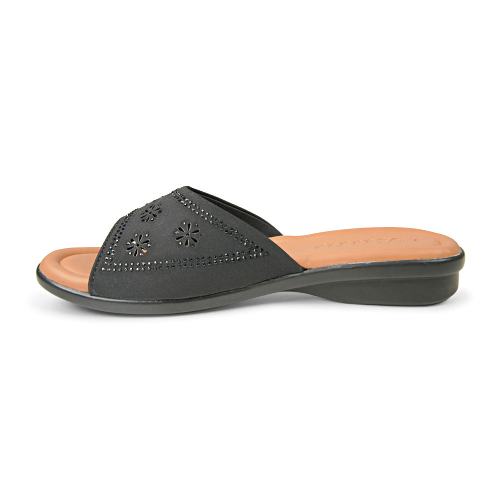 Elevate your everyday look with these stylish and incredibly comfortable women’s slide sandals. Designed for the woman who values both fashion and foot health, these sandals feature a beautiful black upper adorned with intricate floral laser-cut patterns and subtle shimmering accents. Whether you are running errands, heading to a casual lunch, or relaxing at home, these lightweight slides provide the perfect blend of support and breathability. The soft, cushioned footbed ensures you stay comfortable on your feet all day long, while the durable black wedge sole offers a gentle lift without sacrificing stability.