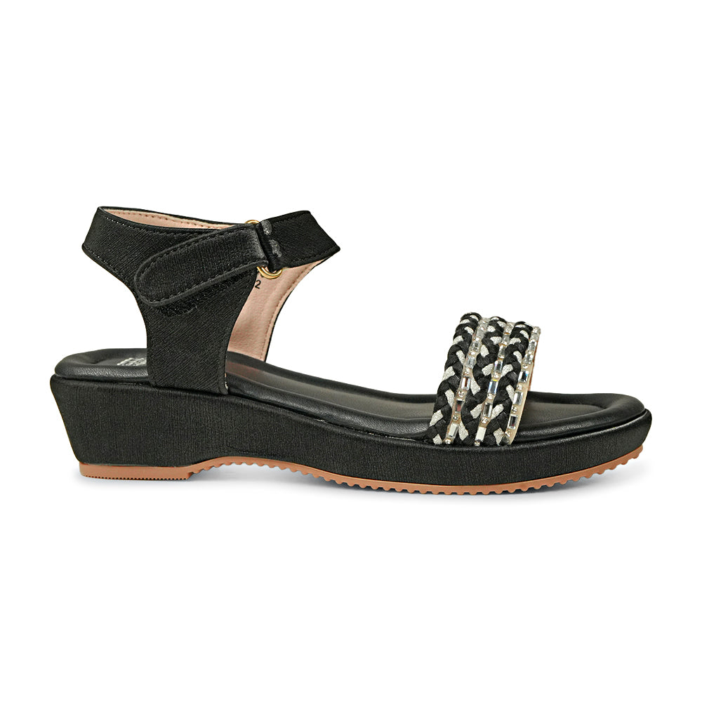 Give your little girl the perfect mix of style and comfort with these adorable black wedge sandals. Designed for active kids who love to look their best, these shoes feature a beautiful braided front strap with shiny silver accents. Whether it’s for a birthday party, a school event, or a family outing, these sandals add a touch of "grown-up" fashion while staying safe and easy to wear. The lightweight wedge heel gives her a tiny bit of height without being wobbly, making them the perfect dressy sandals for girls. They are durable enough for playtime and stylish enough for special occasions, ensuring she stays happy and confident all day long.