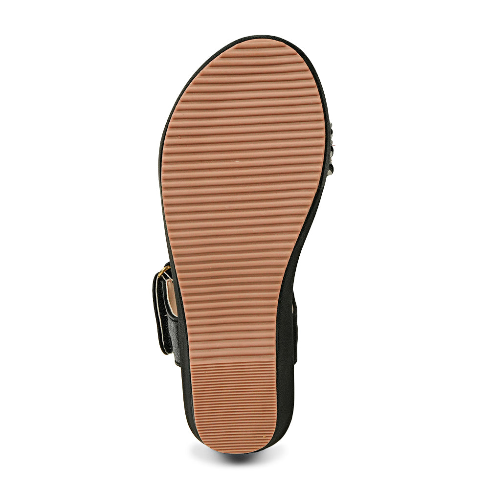STYLE TIPS: These versatile girls' black wedge sandals are a must-have for any young fashionista's wardrobe. For a classic look, pair them with a bright floral sundress or a cute skirt for birthday parties and family gatherings. For a more relaxed, everyday style, they look great with denim shorts or leggings.