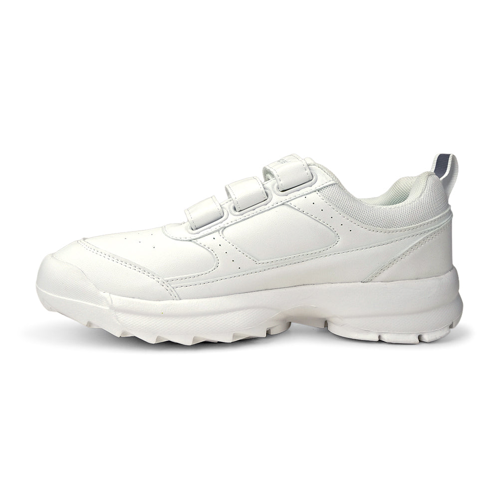 The easy-to-use hook-and-loop closure provides a quick, secure fit without the hassle of laces. Crafted for support, the shoe features a chunky, yet lightweight outsole for excellent traction and cushioning, ensuring all-day comfort. This crisp white trainer is the ideal choice for healthcare professionals or any setting demanding a smart uniform shoe.
