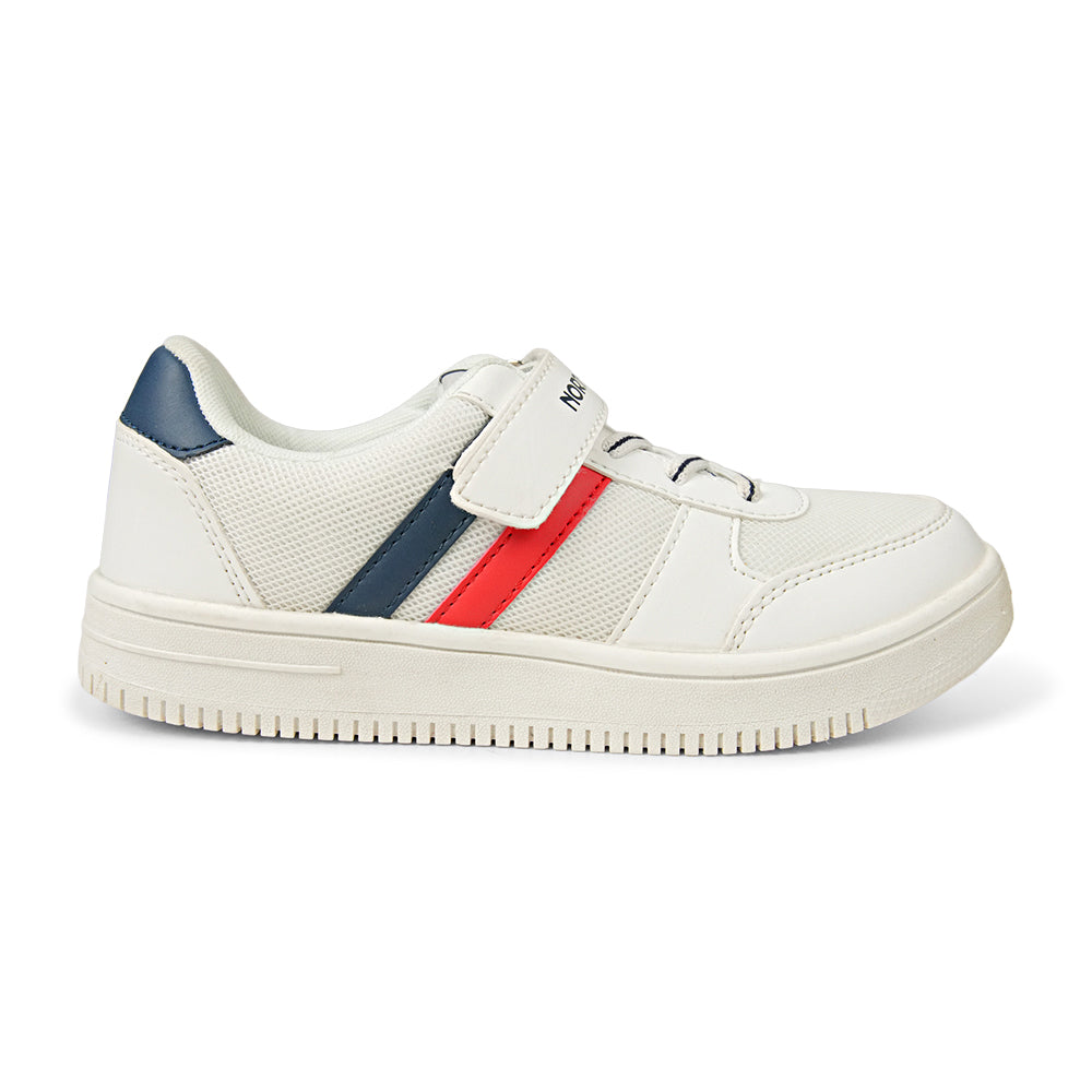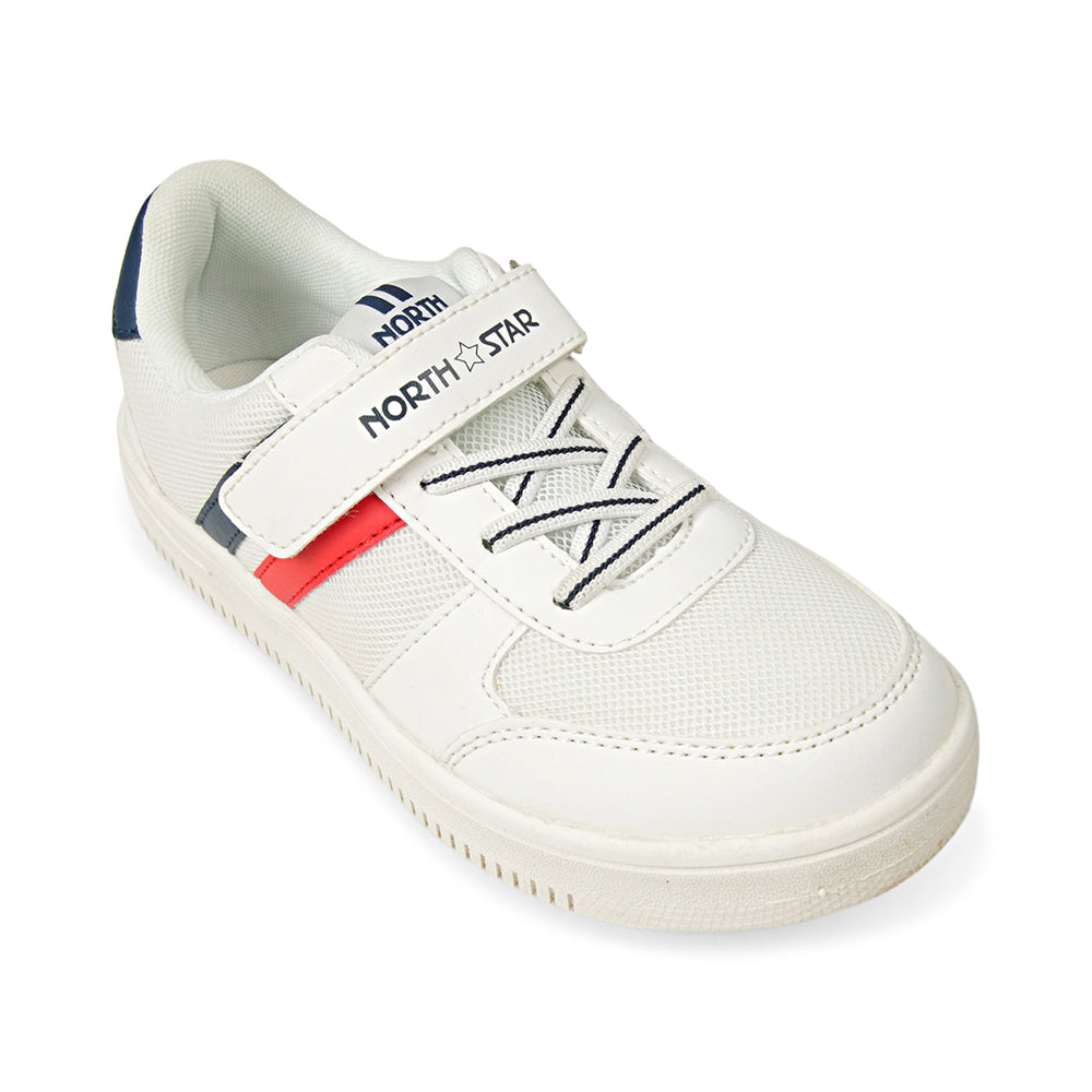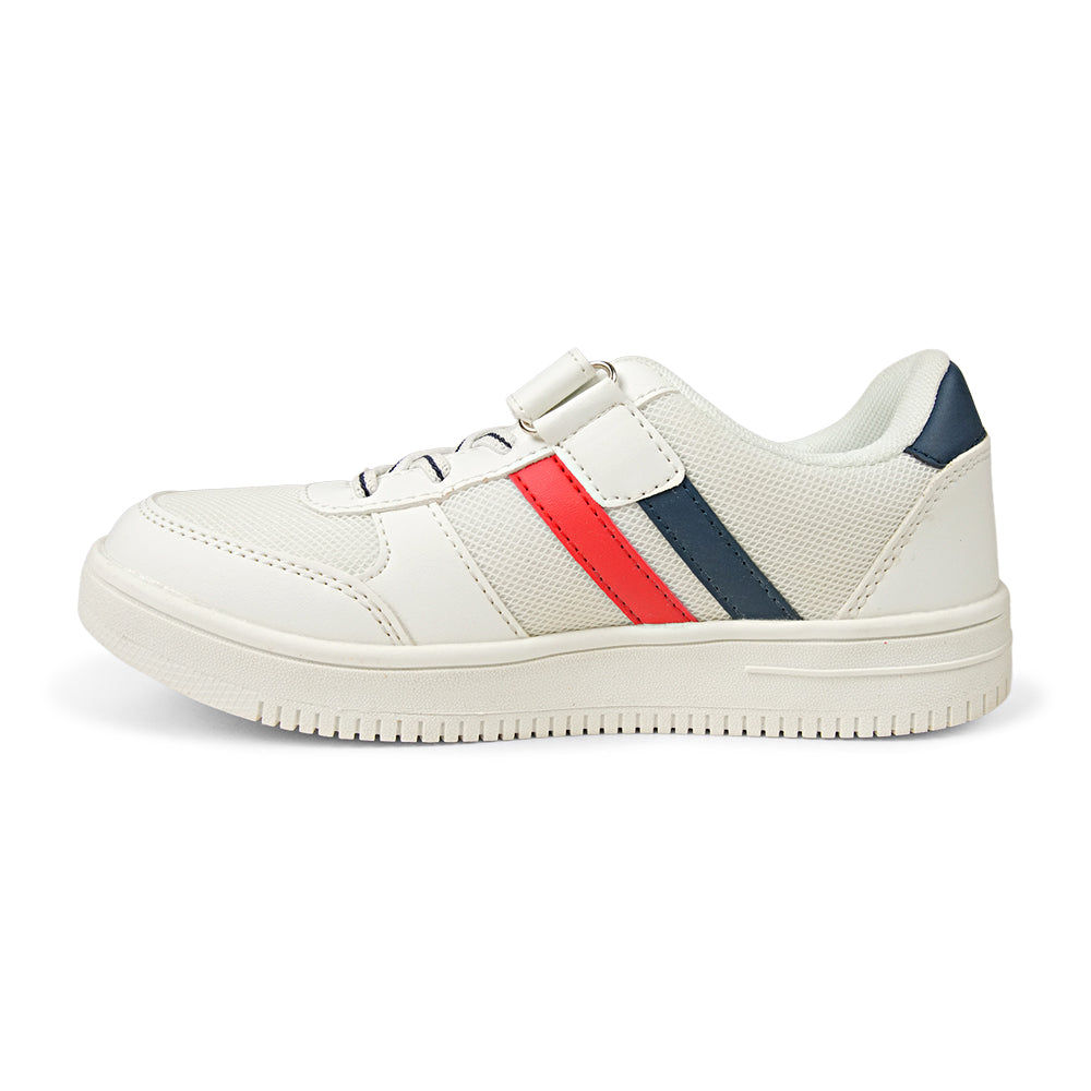 Give your little one the perfect blend of comfort and cool with these Classic White Sporty Sneakers. Designed for active kids who are always on the move, these shoes feature a sleek white base accented by bold navy and red racing stripes. Whether it's a day at school, a trip to the park, or a family outing, these sneakers are built to keep up with every jump, skip, and run. The lightweight design ensures they won't feel weighed down, while the breathable mesh panels keep feet cool and fresh all day long.