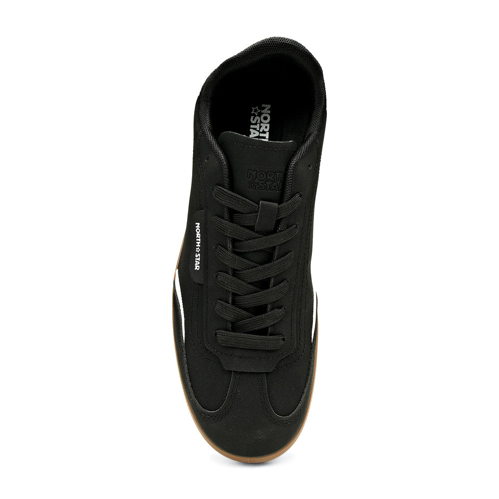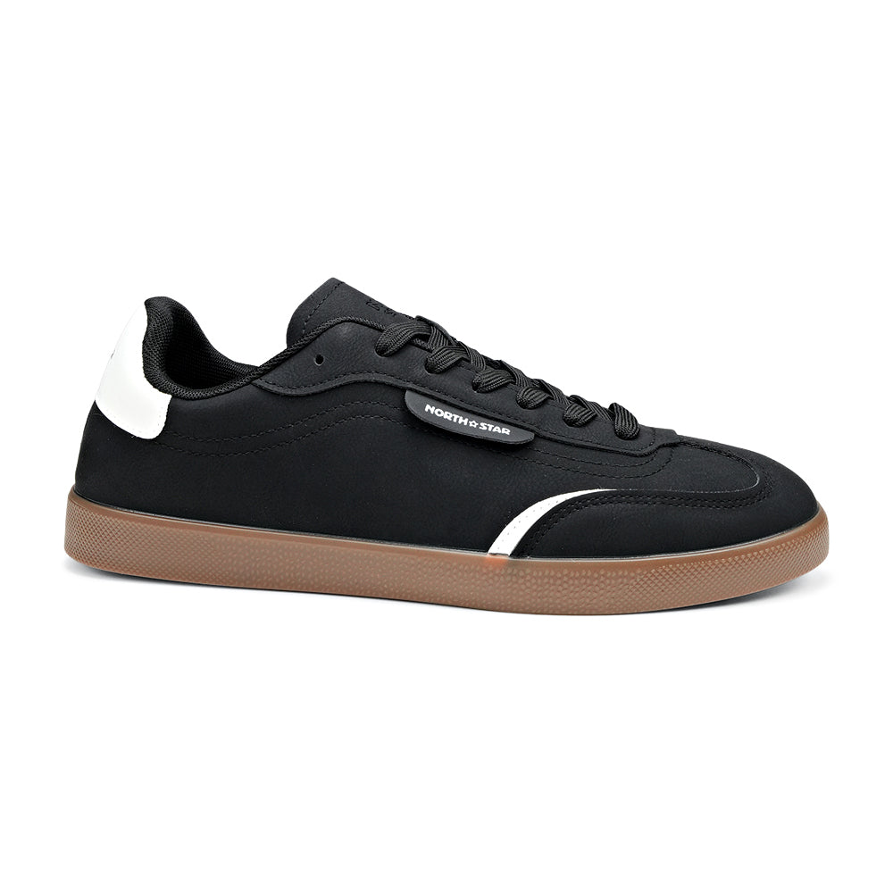 This design seamlessly blends a sleek black upper with a warm, contrasting TPR outsole for a look that's effortlessly cool and timelessly versatile. The addition of a clean white heel tab provides a subtle pop of contrast, elevating the sneaker's aesthetic. Built for all-day comfort, this shoe offers dependable performance without sacrificing style, making it the perfect foundation for any casual or smart-casual outfit.