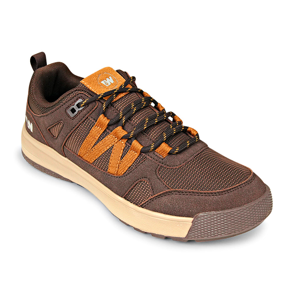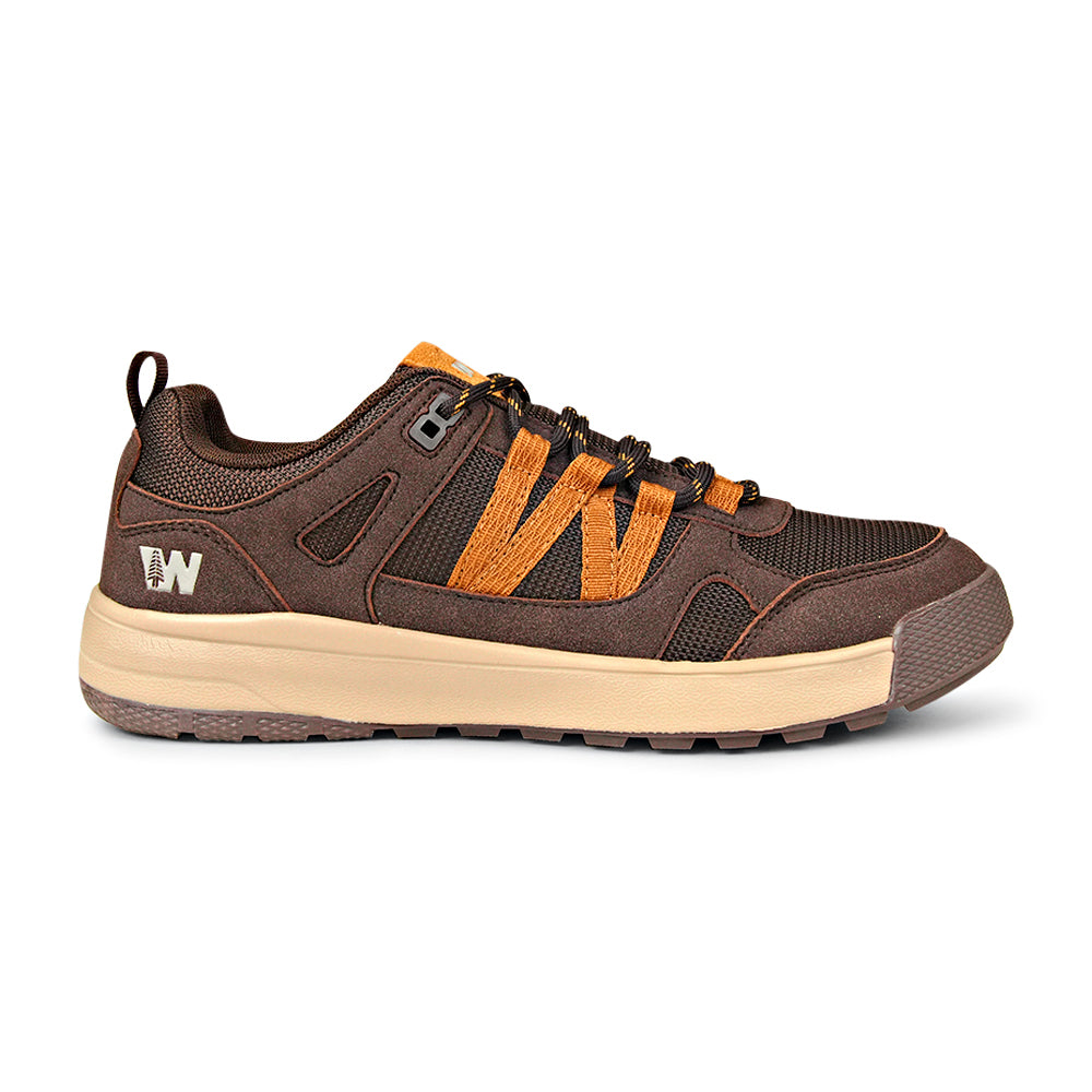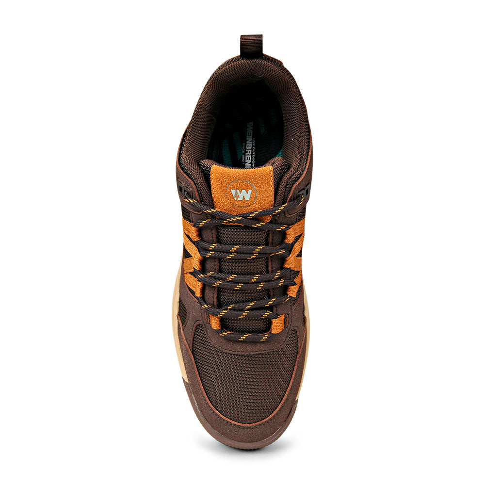 Step into the great outdoors with the Weinbrenner Trailblazer All-Terrain Shoe. Meticulously engineered for performance and comfort, this shoe is your reliable companion for challenging hiking trails, brisk walks, or everyday wear on rugged terrain. Featuring a chocolate brown and burnt orange design, this rugged outdoor shoe seamlessly blends practical functionality with a modern, athletic aesthetic. The low-cut profile ensures maximum ankle mobility, while the robust construction provides the stability and protection you need for any adventure.